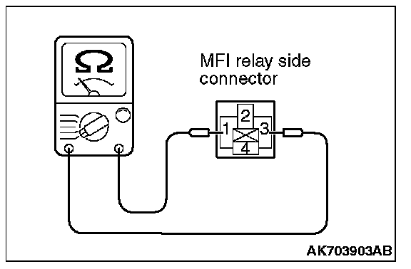 2. Check for continuity between the MFI relay terminals No. 1 and No. 3.
