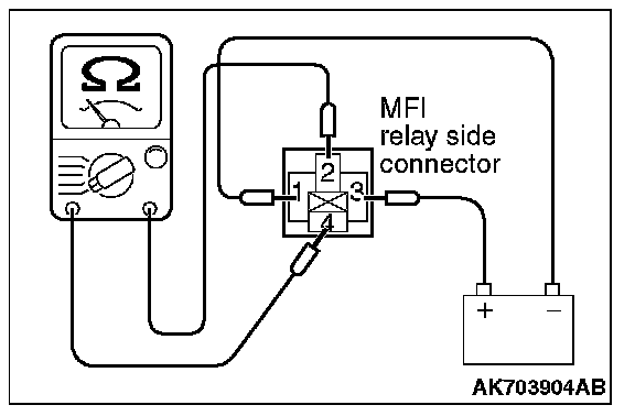 - Battery positive voltage is applied to the MFI relay (terminals No. 3, No. 4).