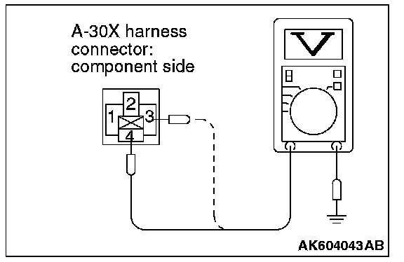 STEP 3. Measure the power supply voltage at MFI relay harness side connector A-30X.