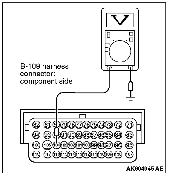 2. Measure the voltage between terminal No. 104 and ground.