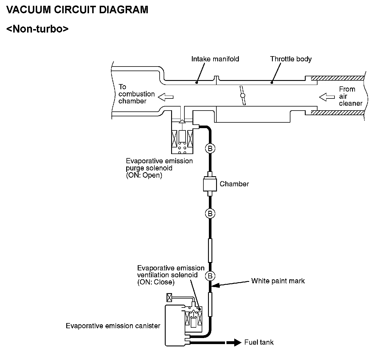 1. Using the VACUUM HOSE ROUTING diagram as a guide, check that the vacuum hoses are correctly connected.