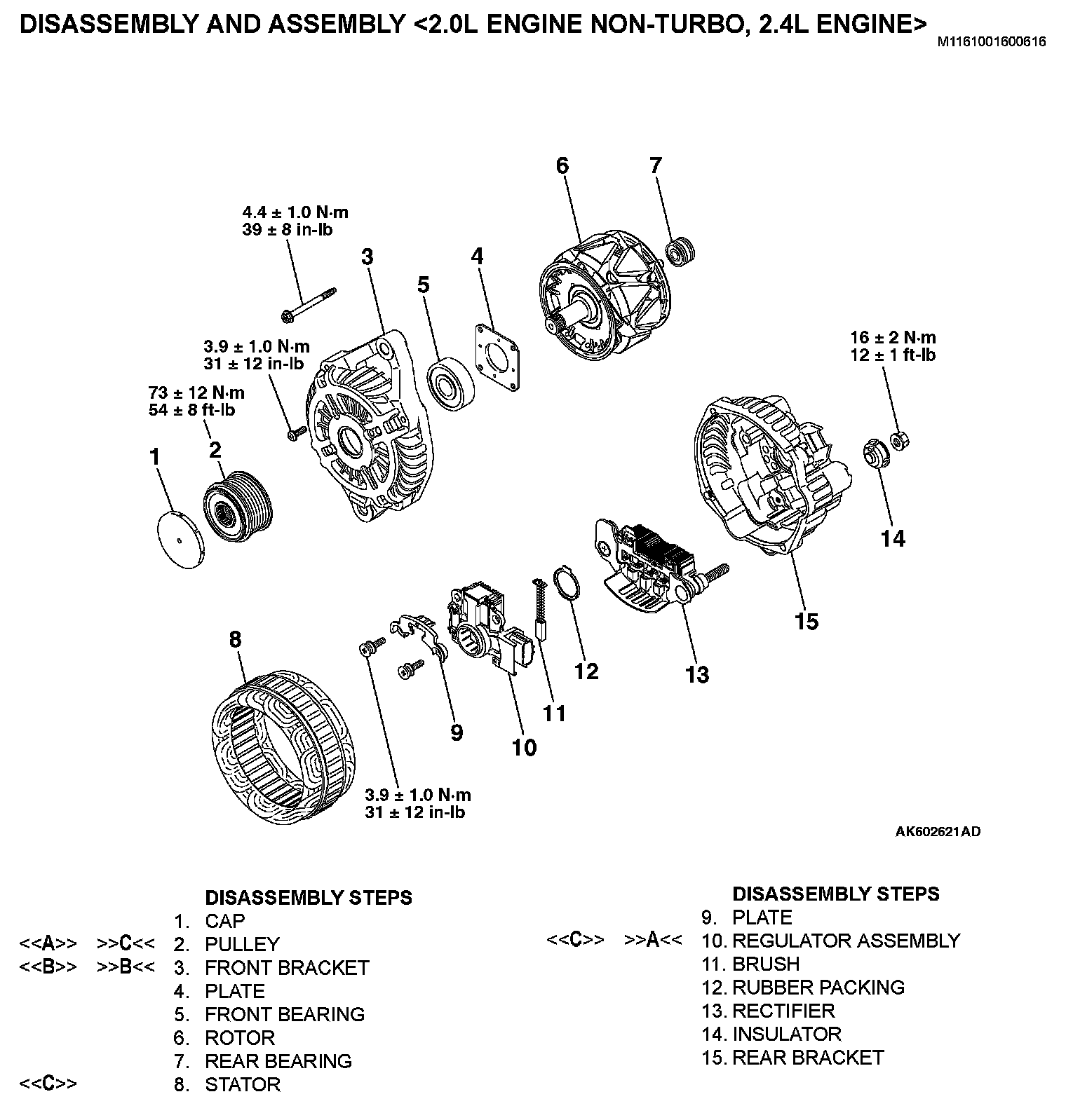 GENERATOR ASSEMBLYDISASSEMBLY AND ASSEMBLY [2.0L ENGINE NON-TURBO, 2.4L ENGINE]