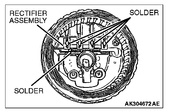 1. Unsolder the stator leads from the main diode of the rectifier assembly when the stator is removed.
