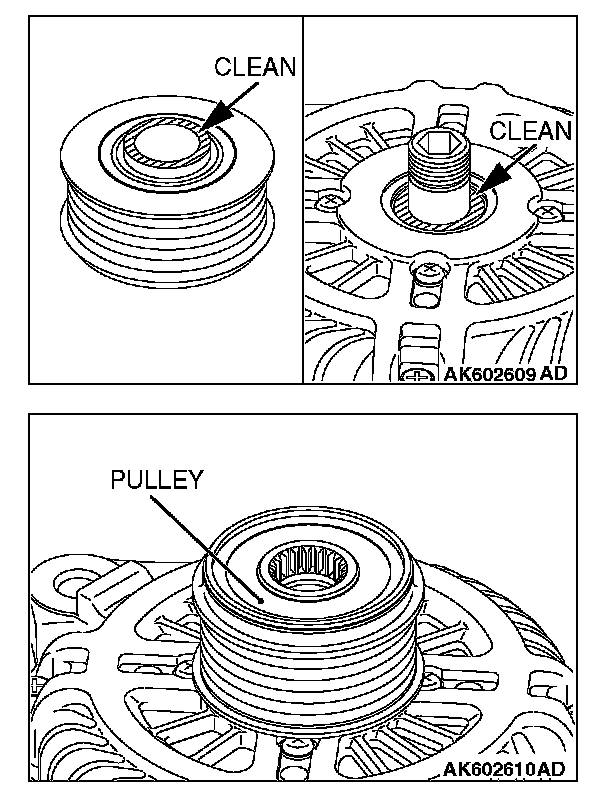 1. Clean the inner race of the front bearing and that of the pulley.