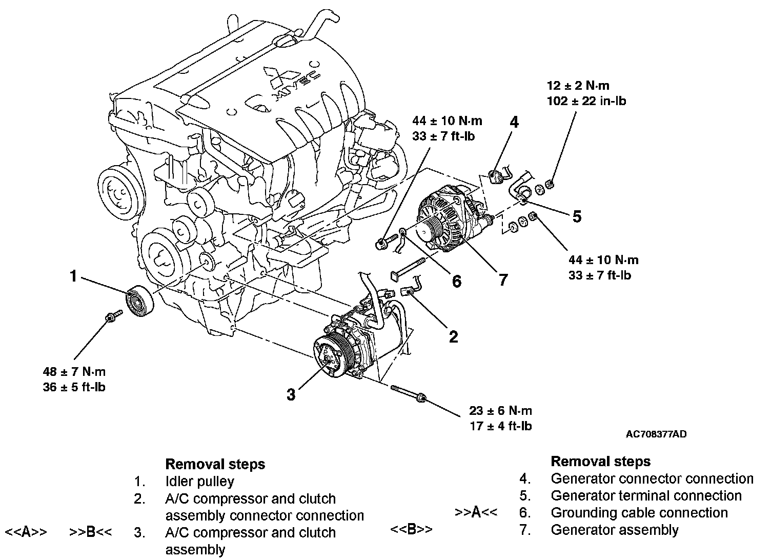 GENERATOR ASSEMBLYREMOVAL AND INSTALLATION [2.0L ENGINE NON-TURBO, 2.4L ENGINE]