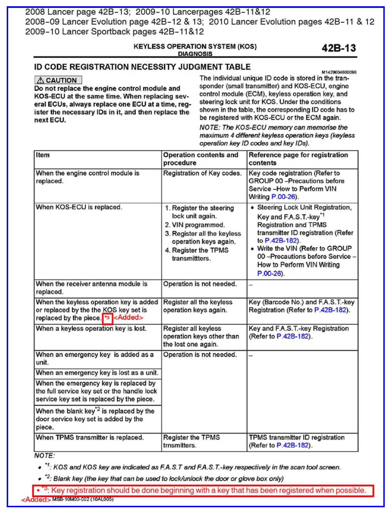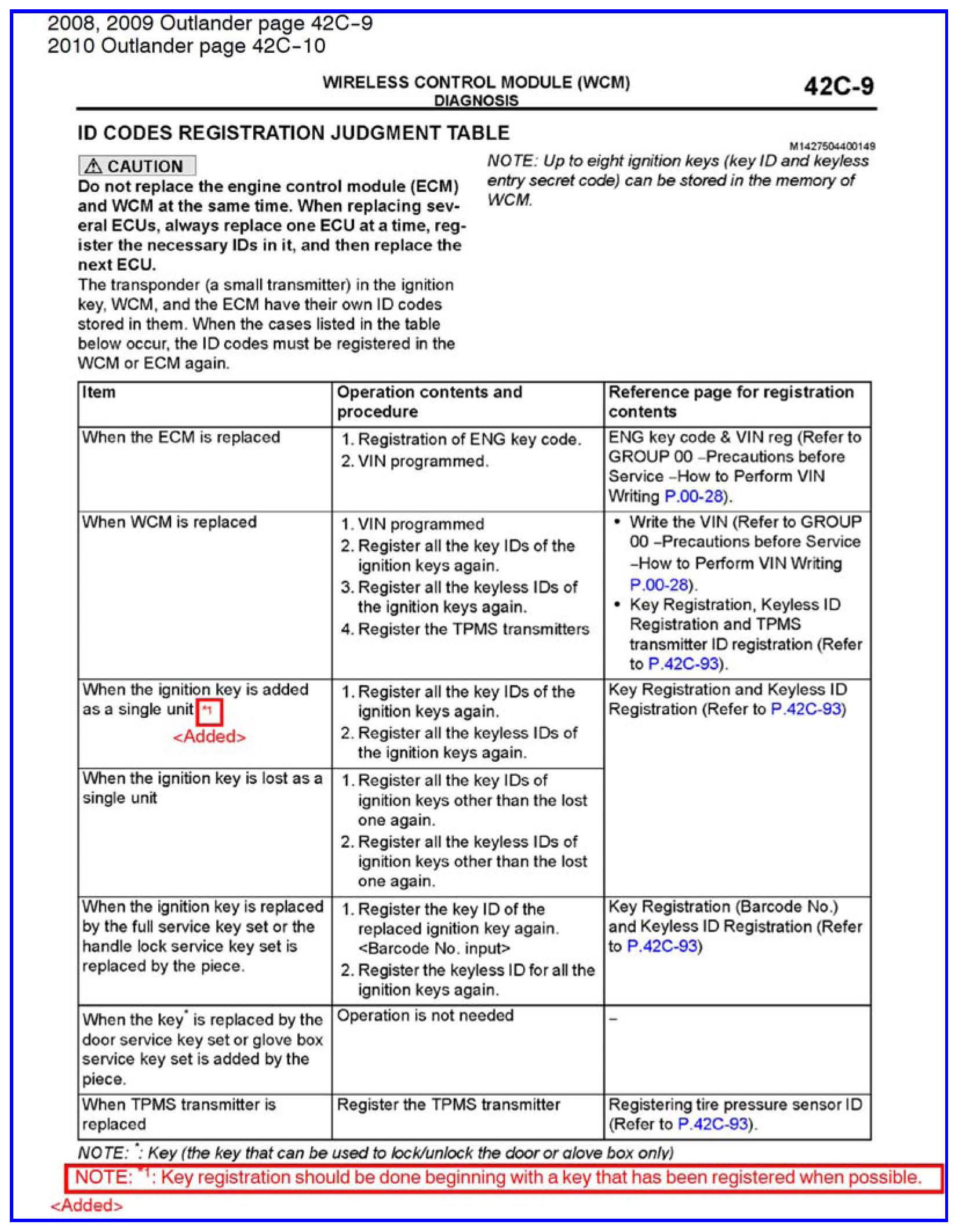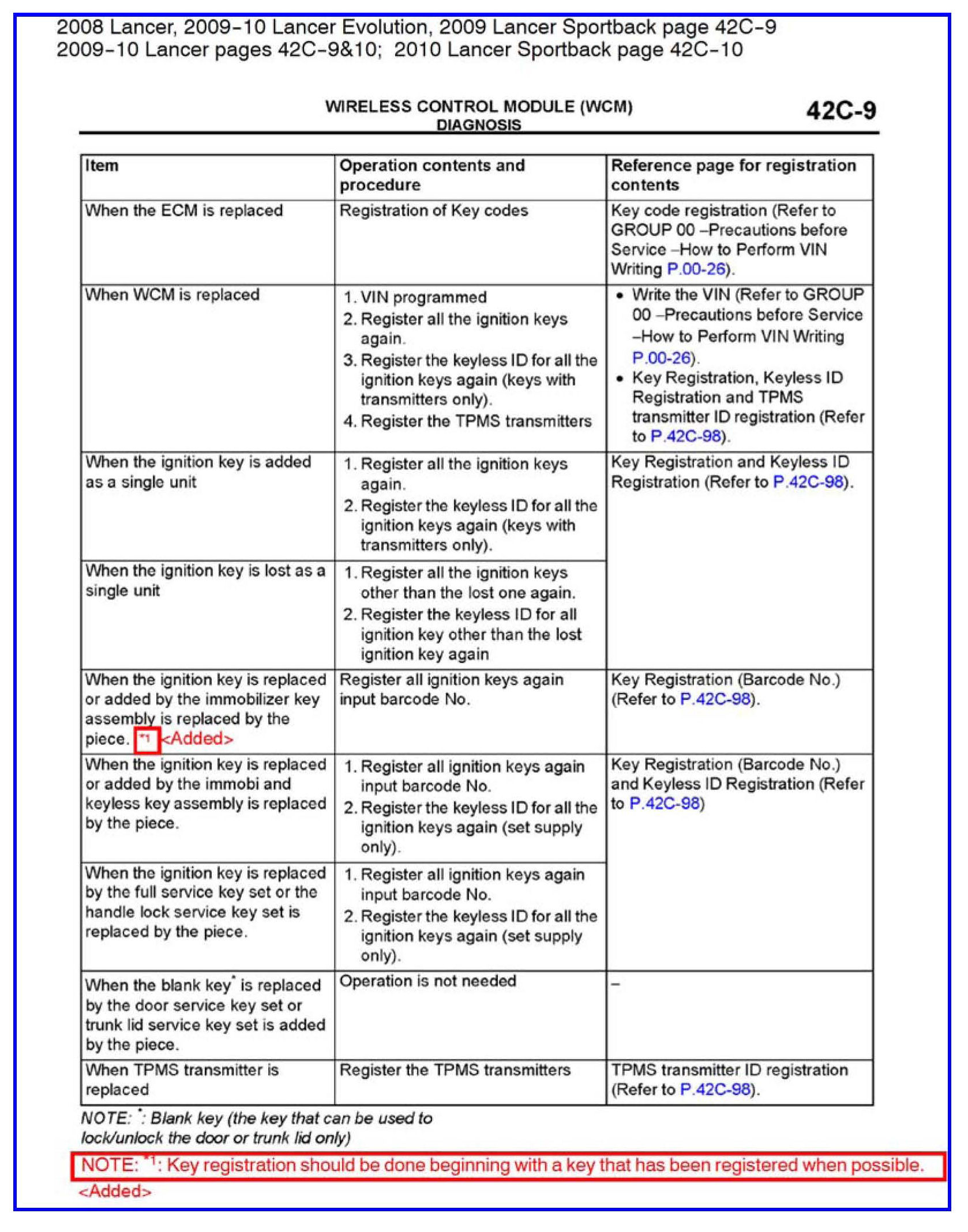 KEY REGISTRATION FOR KOS, WCM AND IMMOBILIZER - SERVICE MANUAL REVISION