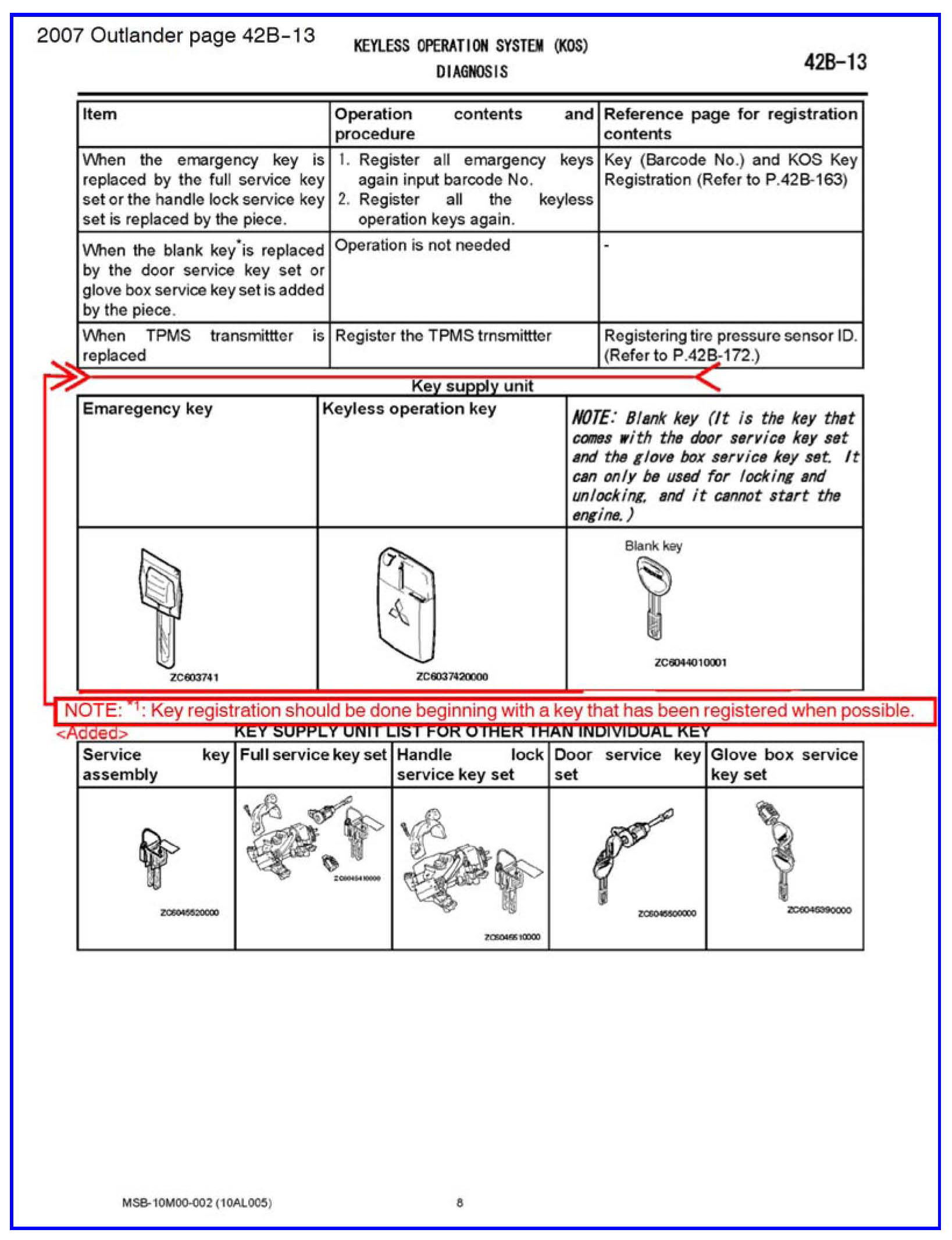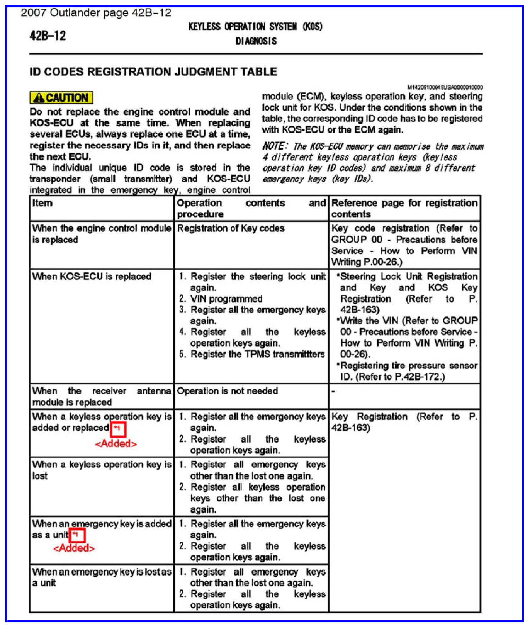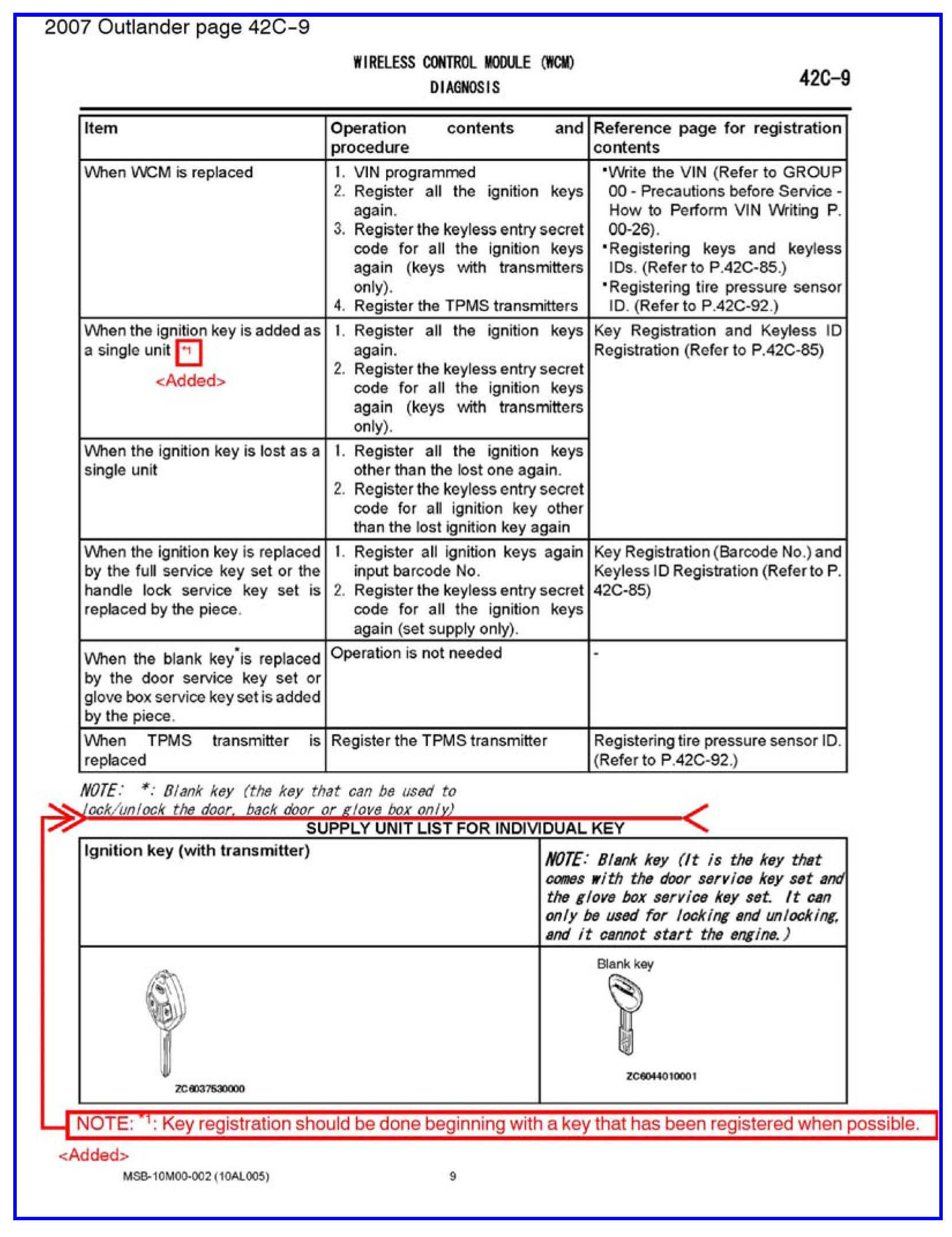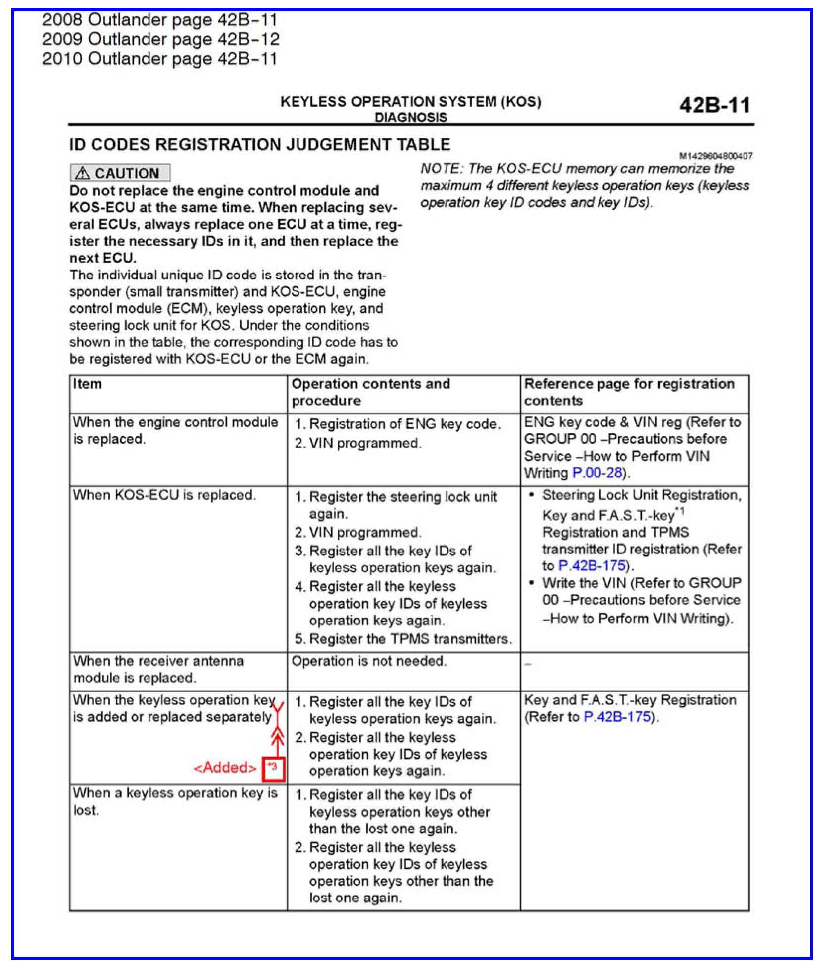 KEY REGISTRATION FOR KOS, WCM AND IMMOBILIZER - SERVICE MANUAL REVISION