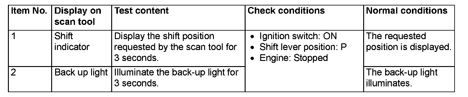 Special Function (Actuator Test Reference Table)