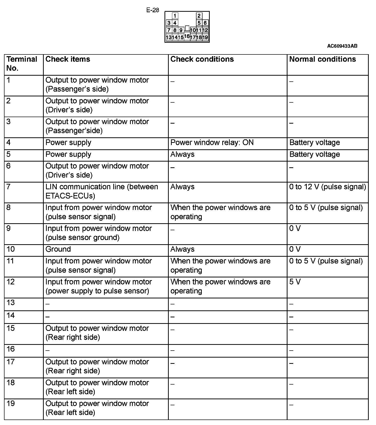 CHECK AT ECU TERMINAL [Vehicles with auto down and auto up mechanism]