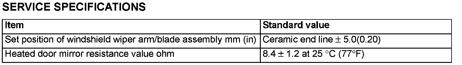 Wiper and Washer Systems: Specifications