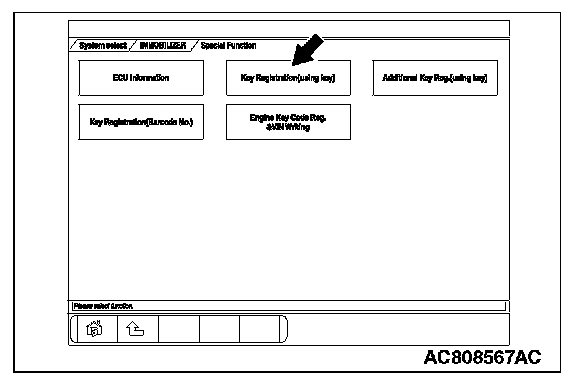 Encrypted Code Registration Using Ignition Key [Registration Using Scan Tool MB991958 (M.U.T.-III Sub Assembly)]