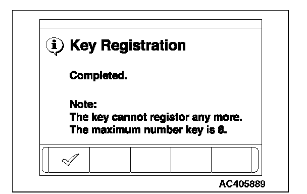 12. A maximum of eight ignition keys can be registered. When the registration of the eighth ignition key is finished, key registration completion menu is displayed. Press the OK button and finish the ignition key registration.