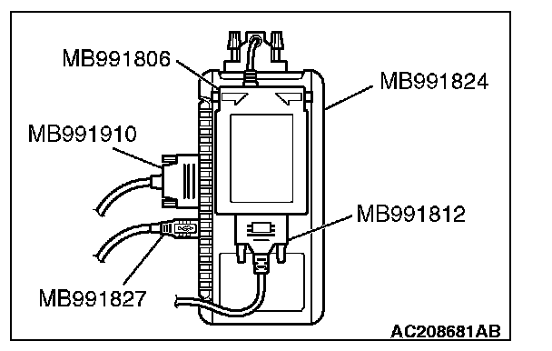 3. Connect special tool MB991827 to special tool MB991824 and the personal computer.