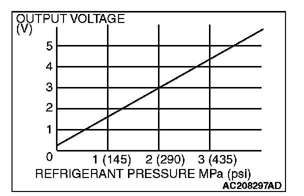 4. At this time, check to see that the voltage of A/C pressure sensor terminal No. 2 reflects the specifications of the figure.