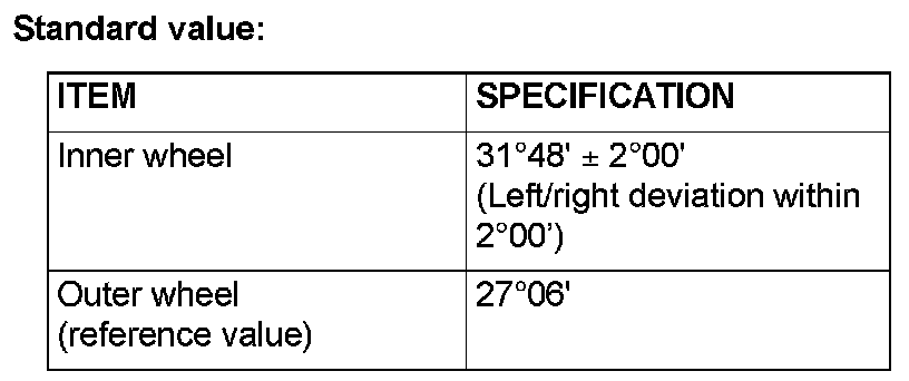 1. Place the front wheel on a turning radius gauge and measure the steering angle.