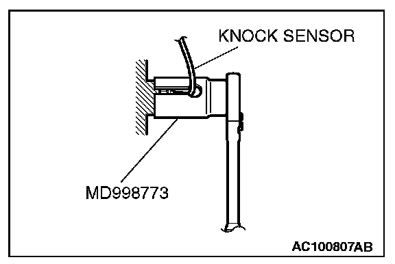 Use special tool MD998773 to tighten the knock sensor to the specified torque in the same manner as removal.