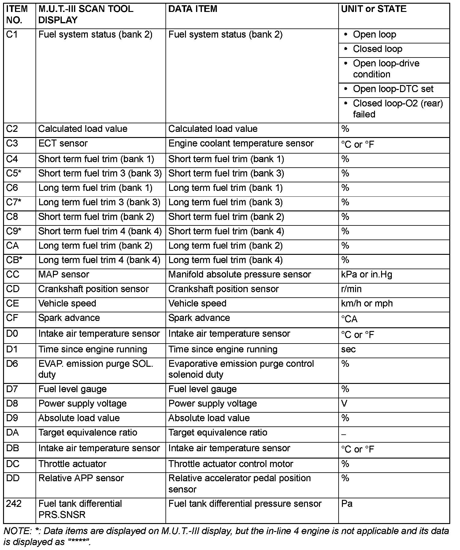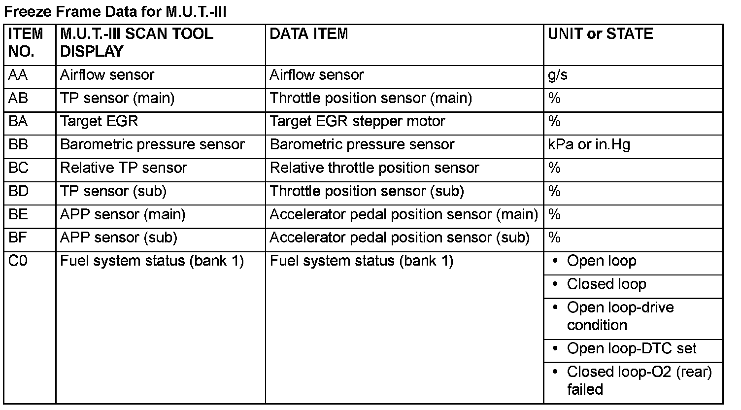 Freeze Frame Data for General Scan Tool: