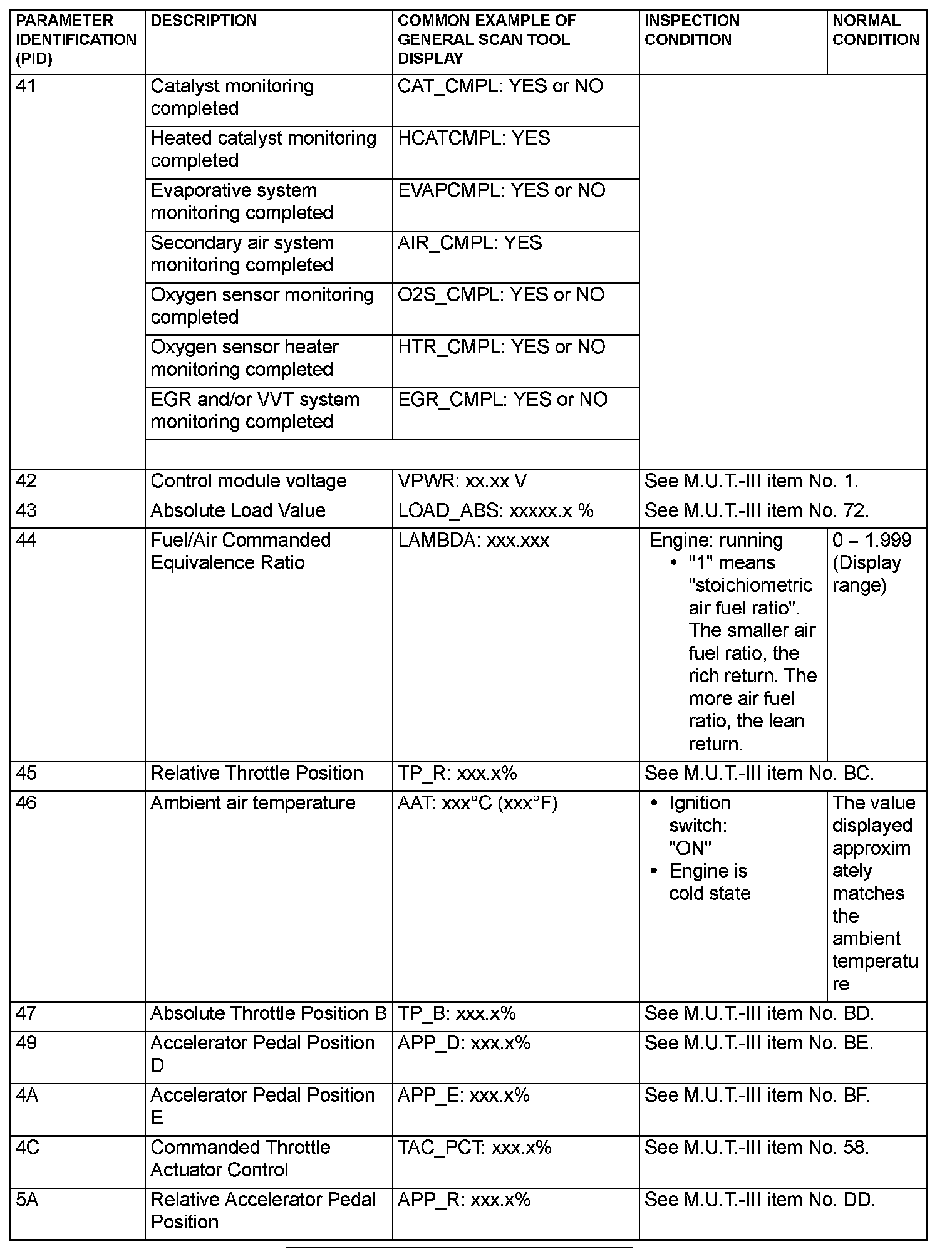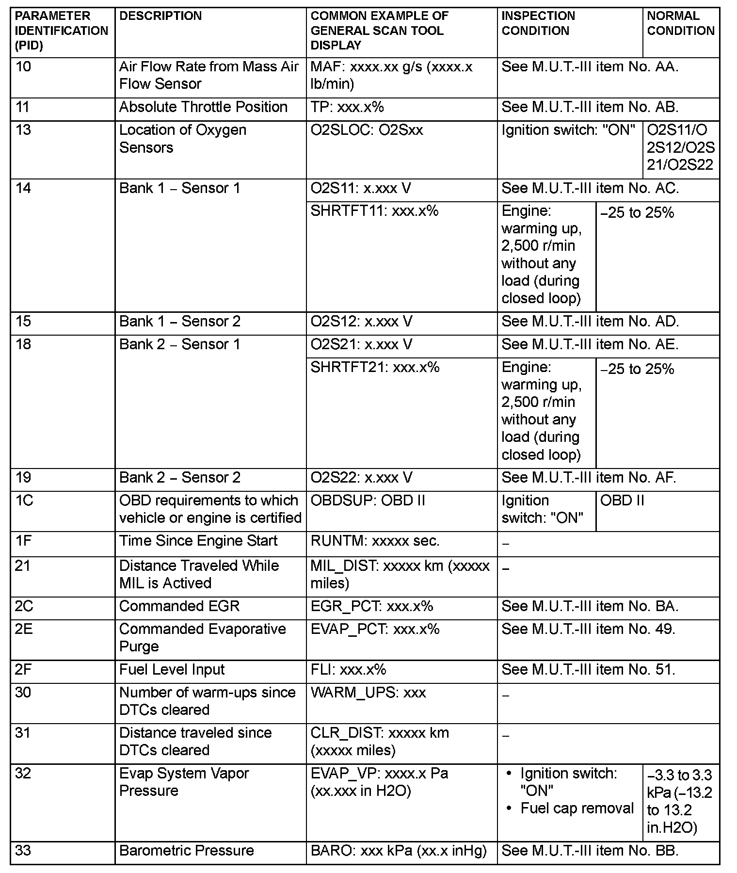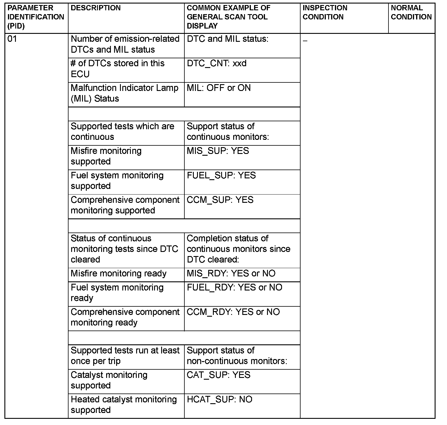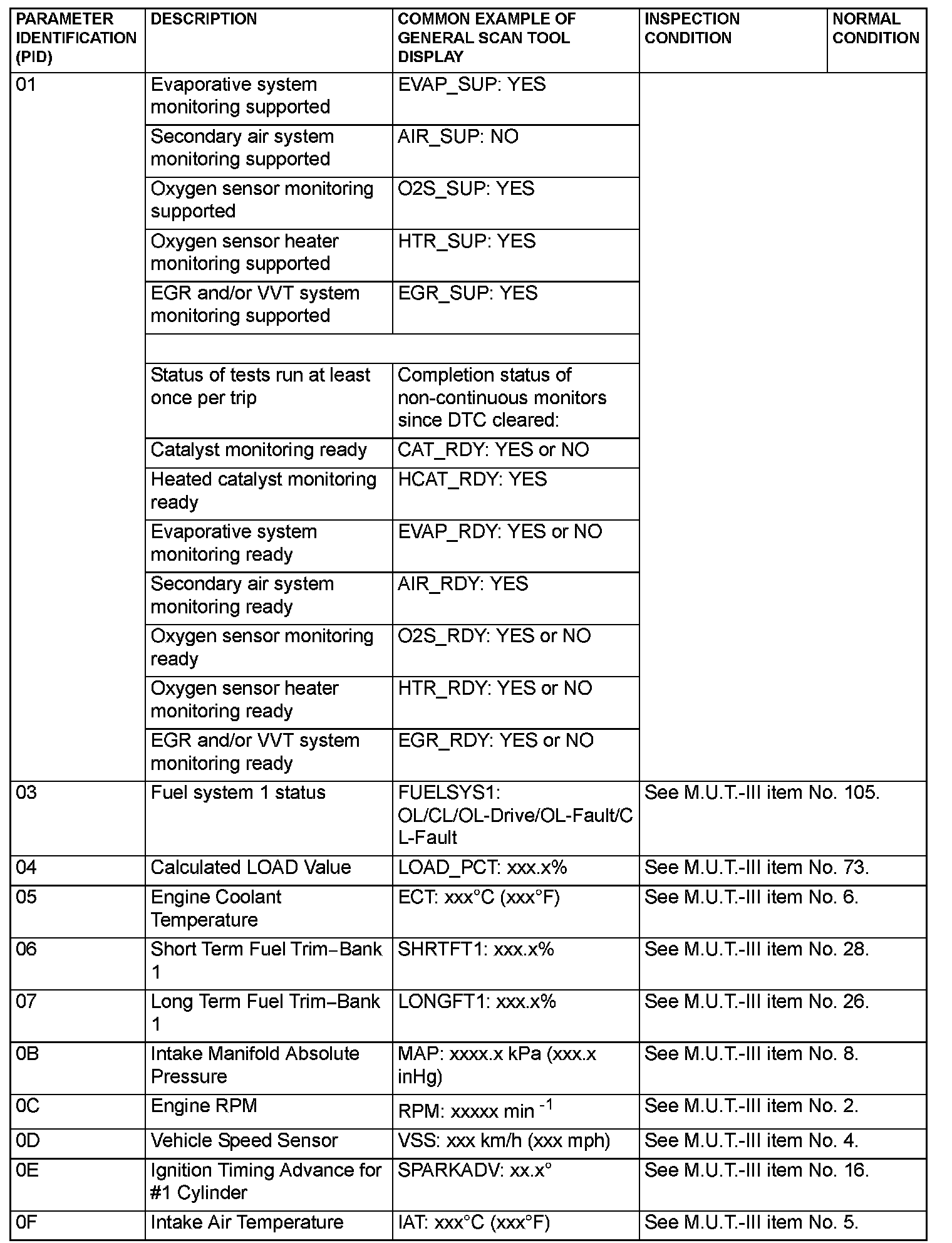 GENERAL SCAN TOOL (GST) MODE O1 REFERENCE TABLEThe purpose of this service of to allow access to cur rent emission-related data values including analogue inputs and outputs digital inputs and outputs and system status information.