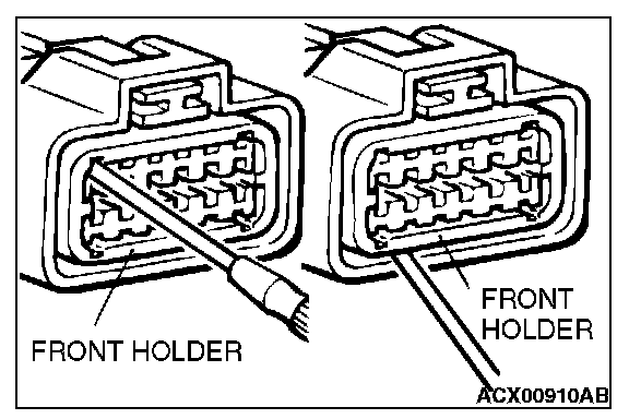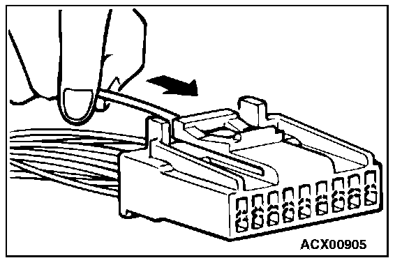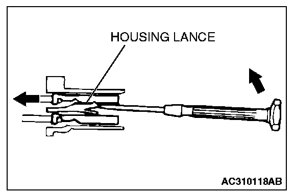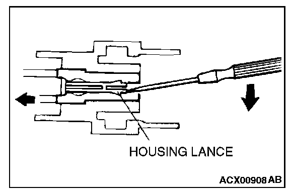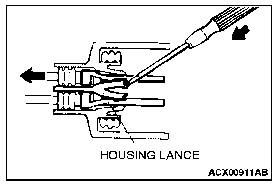 Loosely engaged terminals can be repaired by removing the female terminal from the connector housing and raising its lance to establish better engagement. Removal of the connector terminal used for MFI and INVECS-II A/T control circuit can be done in the following manner.