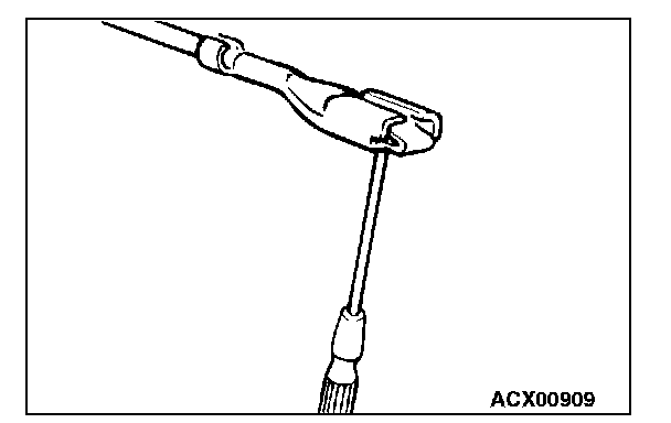 3. Press the contact point to the male terminal down by holding a screwdriver [1.4 mm (0.06 inch) width] as shown in the figure. Lightly squeeze the outer edge so the flats are parallel with the bottom.
