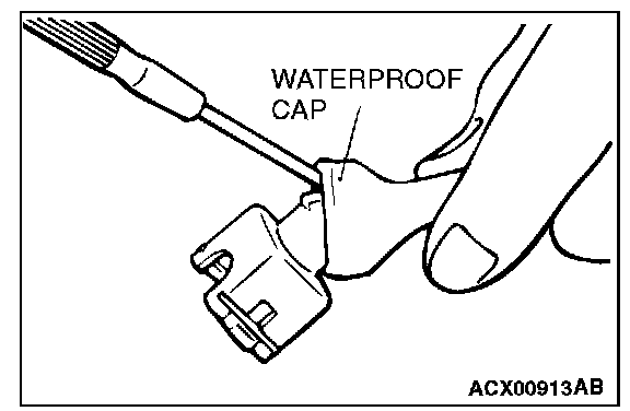 2. Insert the tip of a screwdriver [0.8 mm (0.03 inch) width] into the connector as shown in the figure, push it lightly to raise the housing lance, and pull out the terminal.