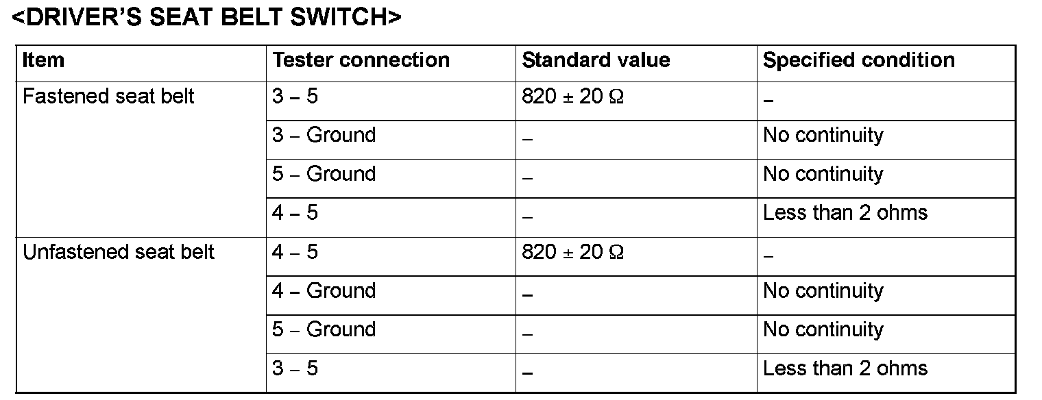 Driver's Seat Belt Switch: