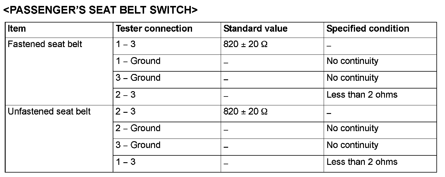 Passenger's Seat Belt Switch: