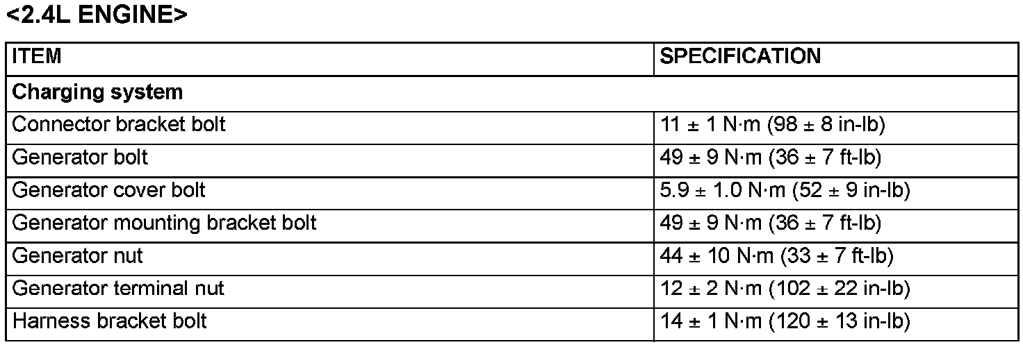 Fastener Tightening Specification - Charging System: