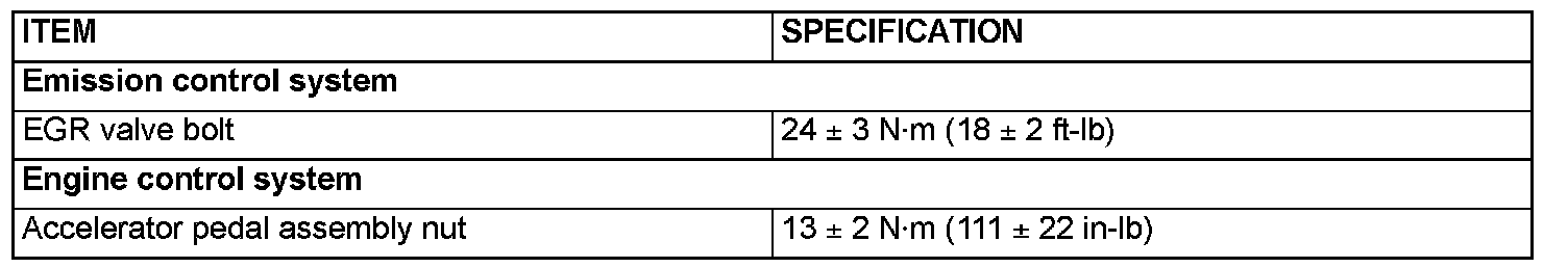 Fastener Tightening Specifications: