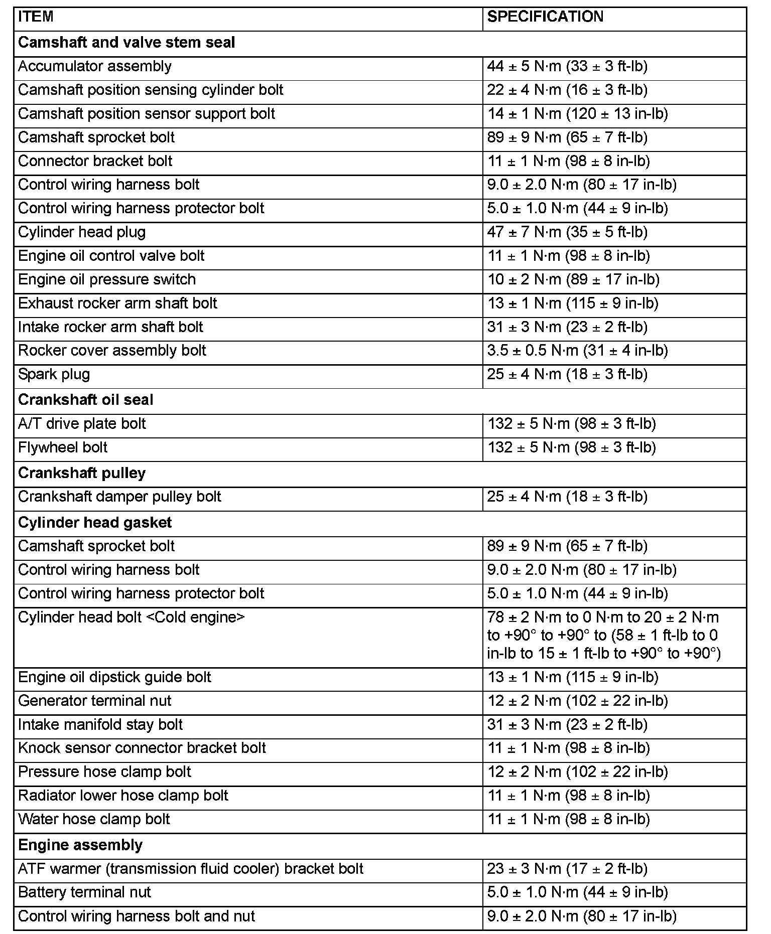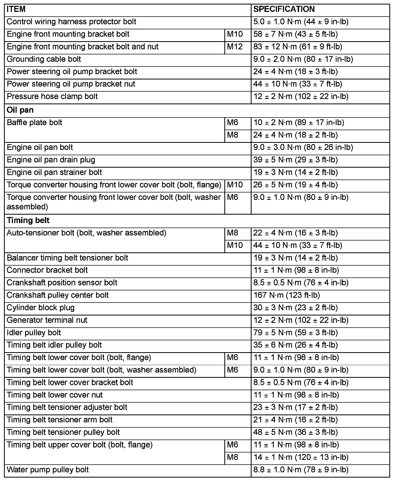 FASTENER TIGHTENING SPECIFICATIONS