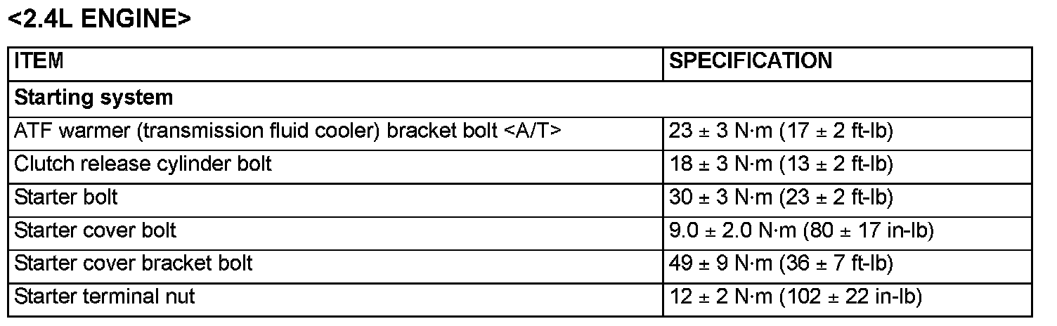 Fastener Tightening Specification - Starting System: