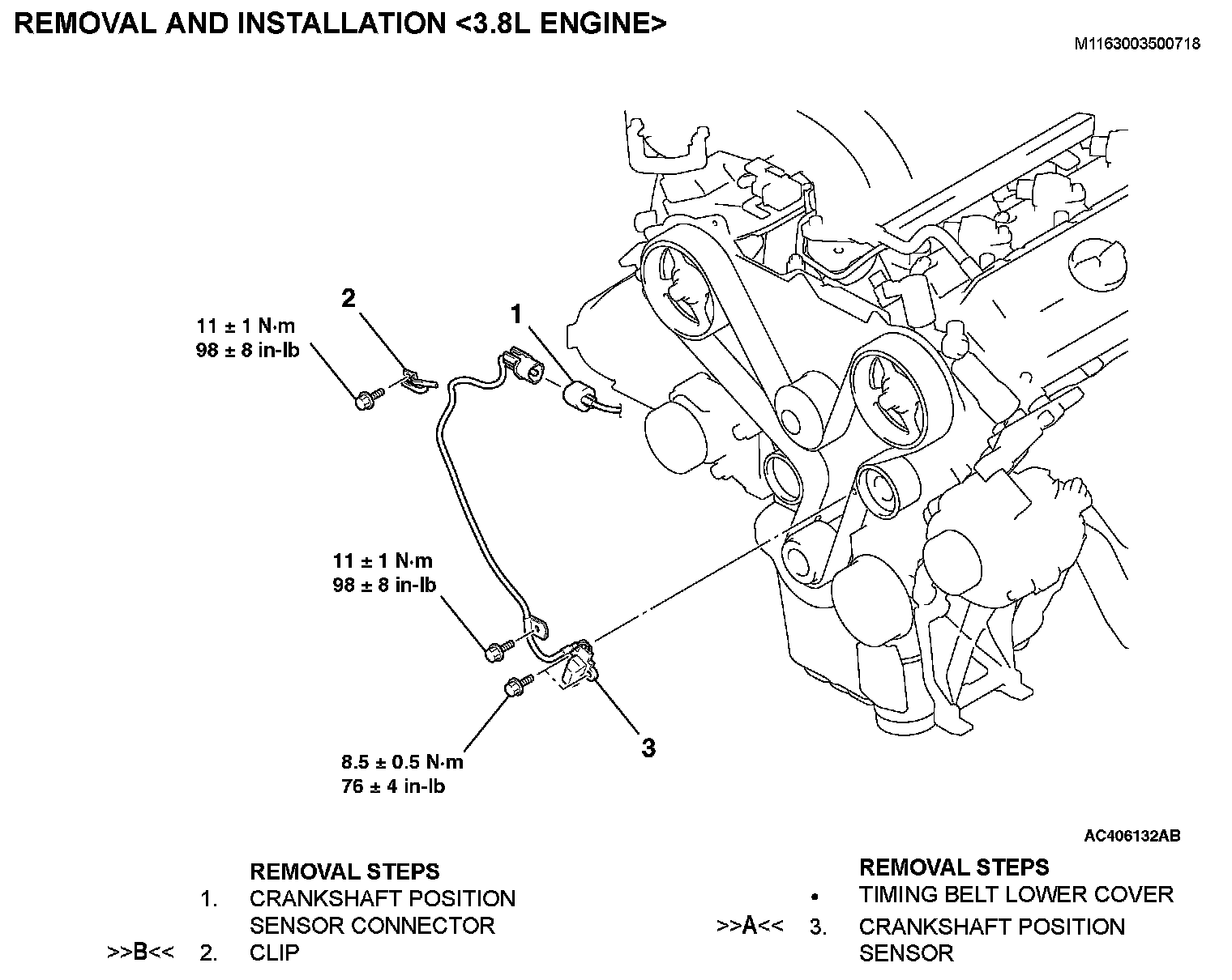 CRANKSHAFT POSITION SENSORREMOVAL AND INSTALLATION [3.8L ENGINE]