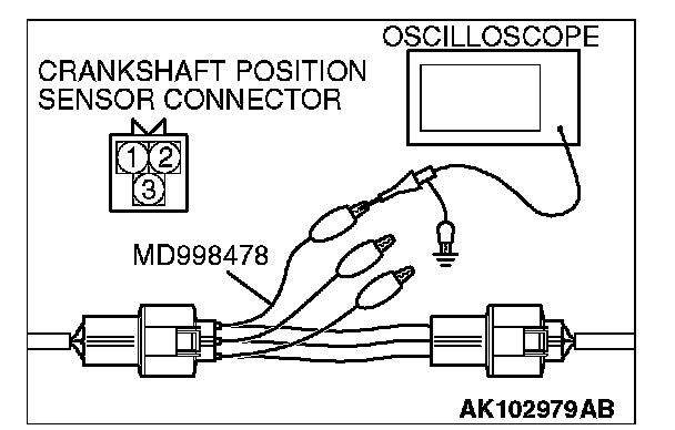 4. Connect the oscilloscope probe to crankshaft position sensor connector terminal No. 2 (black clip of special tool).
