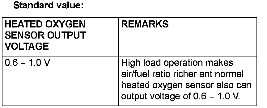 - If the sufficiently high temperature (of approximate 400 °C or more) is not reached although the oxygen sensor is normal, the output voltage would be possibly low although the rich air-fuel ratio.