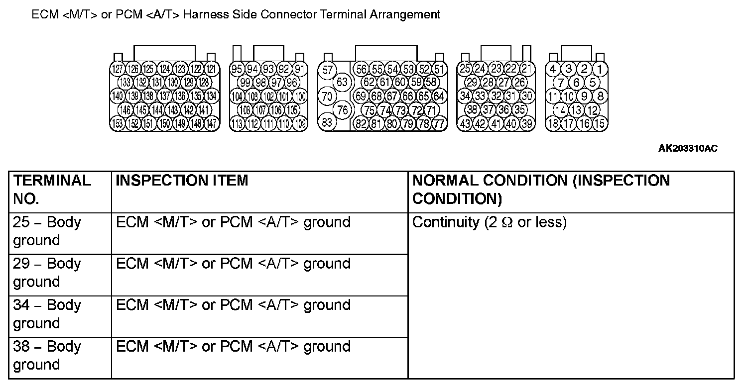 CHECK AT THE ENGINE CONTROL MODULE (ECM) [M/T] OR THE POWERTRAIN CONTROL MODULE [PCM) [A/T]