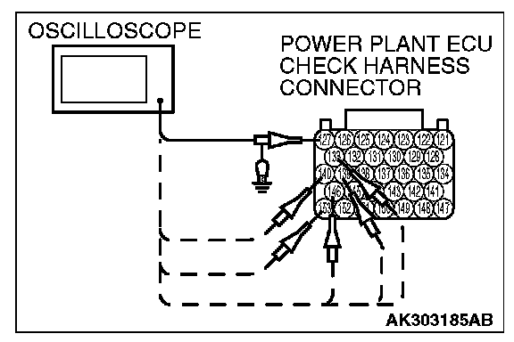 2. Connect the oscilloscope probe to check harness terminal No. 124, No. 130, No. 136 and No. 142.