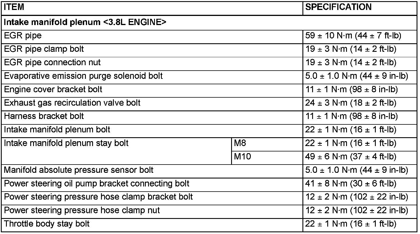 Intake Manifold Plenum - Fastener Tightening Specifications: