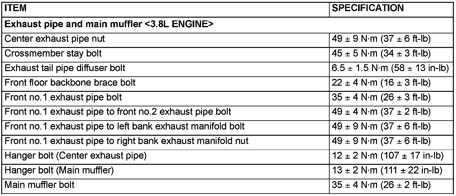 Exhaust Pipe And Main Muffler - Fastener Tightening Specifications: