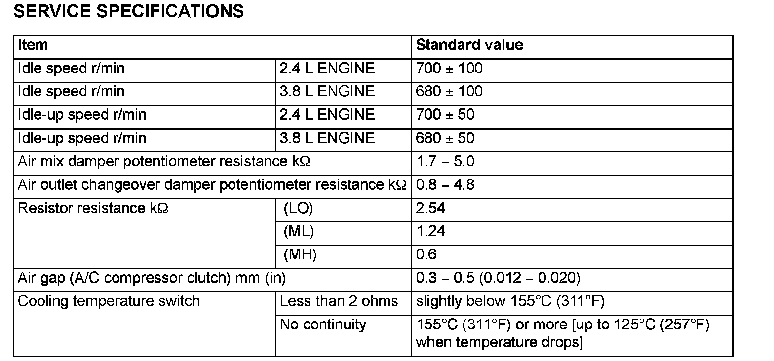 SERVICE SPECIFICATIONS