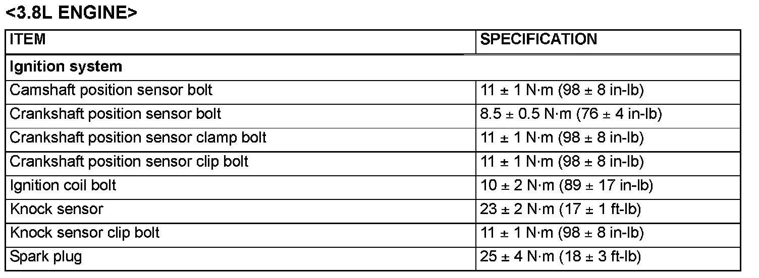 Fastener Tightening Specification - Ignition System: