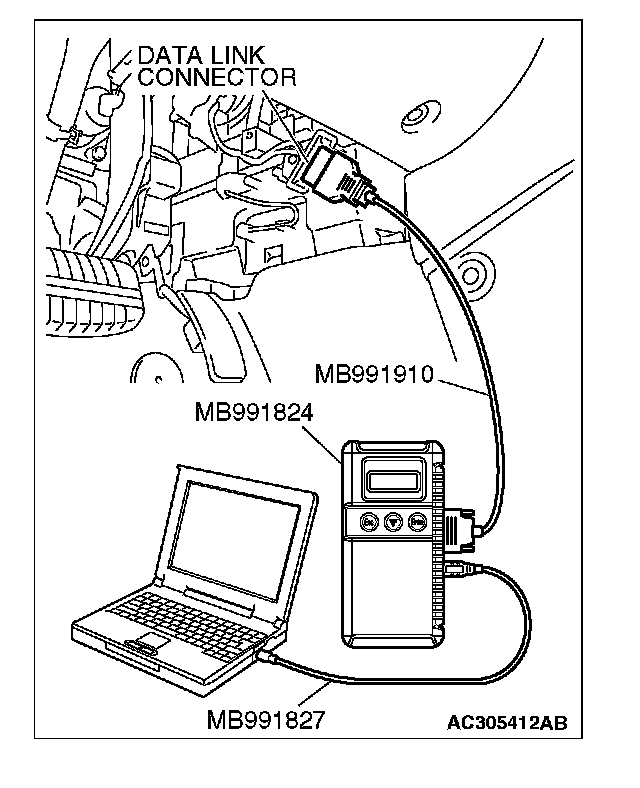 1) Connect scan tool MB991958 to the data link connector.