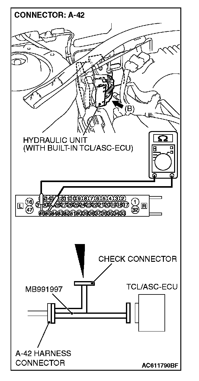 NOTE: Do not connect special tool MB991997 to the [TCL/ASC-ECU]