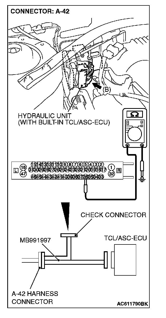 STEP 6. Measure the resistance at the TCL/ASC-ECU connector A-42.