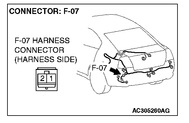 STEP 7. Check TCL/ASC-ECU connector A-42, intermediate connector C-25 and wheel speed sensor [rear: LH] connector F-07 for loose, corroded or damaged terminals, or terminals pushed back in the connector.