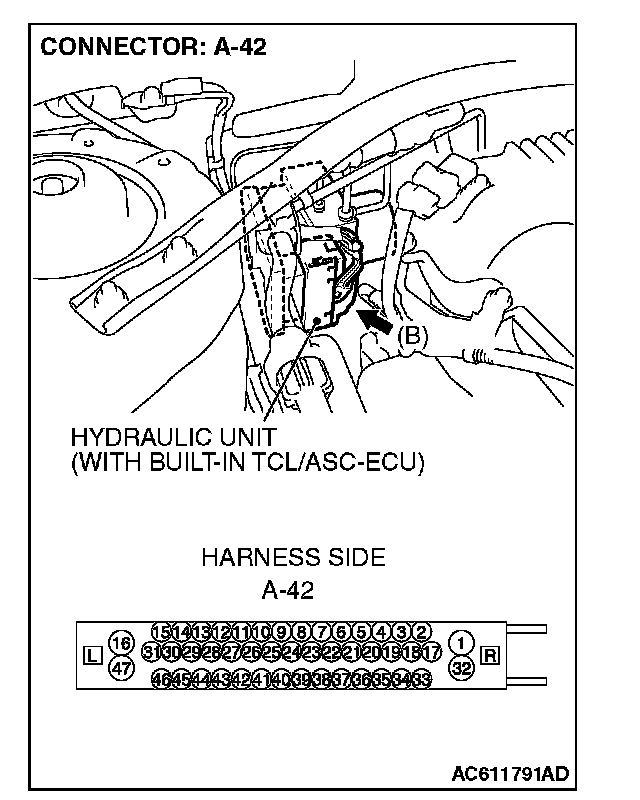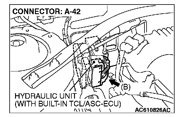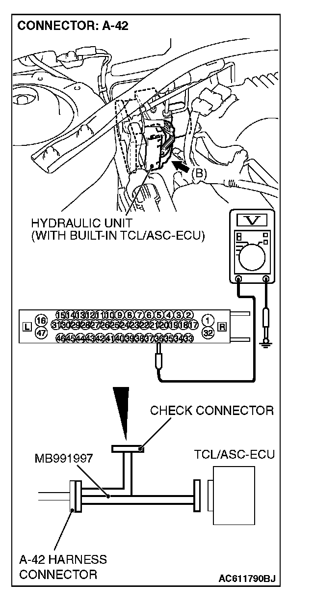 STEP 8. Measure the voltage at TCL/ASC-ECU connector A-42.