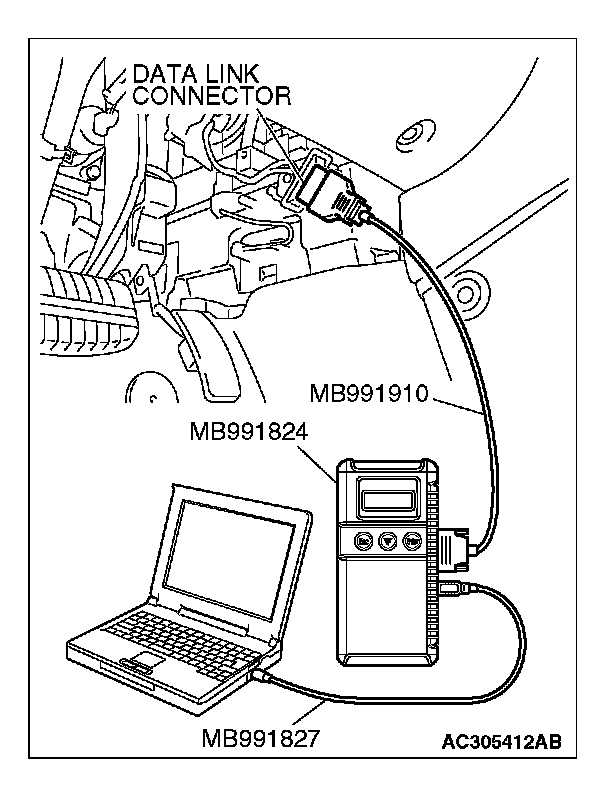 To prevent damage to scan tool MB991958, always turn the ignition switch to the "LOCK" (OFF) position before connecting or disconnecting scan tool MB991958.