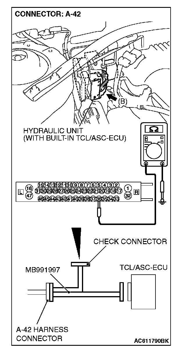 STEP 9. Measure the resistance at TCL/ASC-ECU connector A-42.