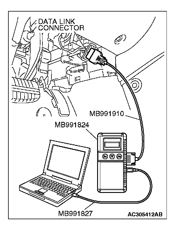 NOTE: Do not connect special tool MB991997 to the TCL/ASC-ECU.