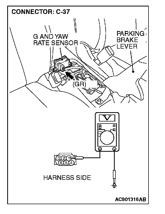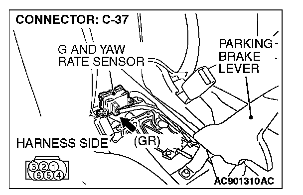 1) Disconnect the G and yaw rate sensor connector C-37, and measure at the harness side connector.