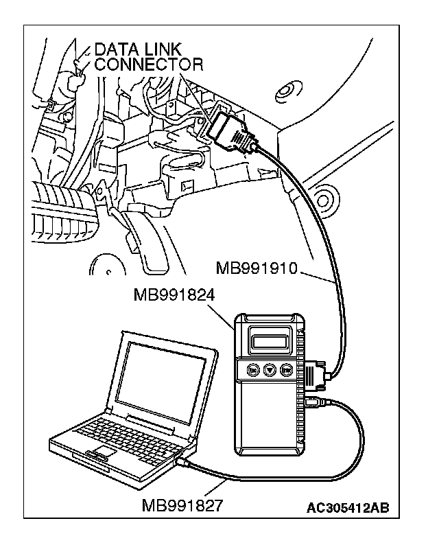 To prevent damage to scan tool MB991958, always turn the ignition switch to the "LOCK" (OFF) position before connecting or disconnecting scan tool MB991958.